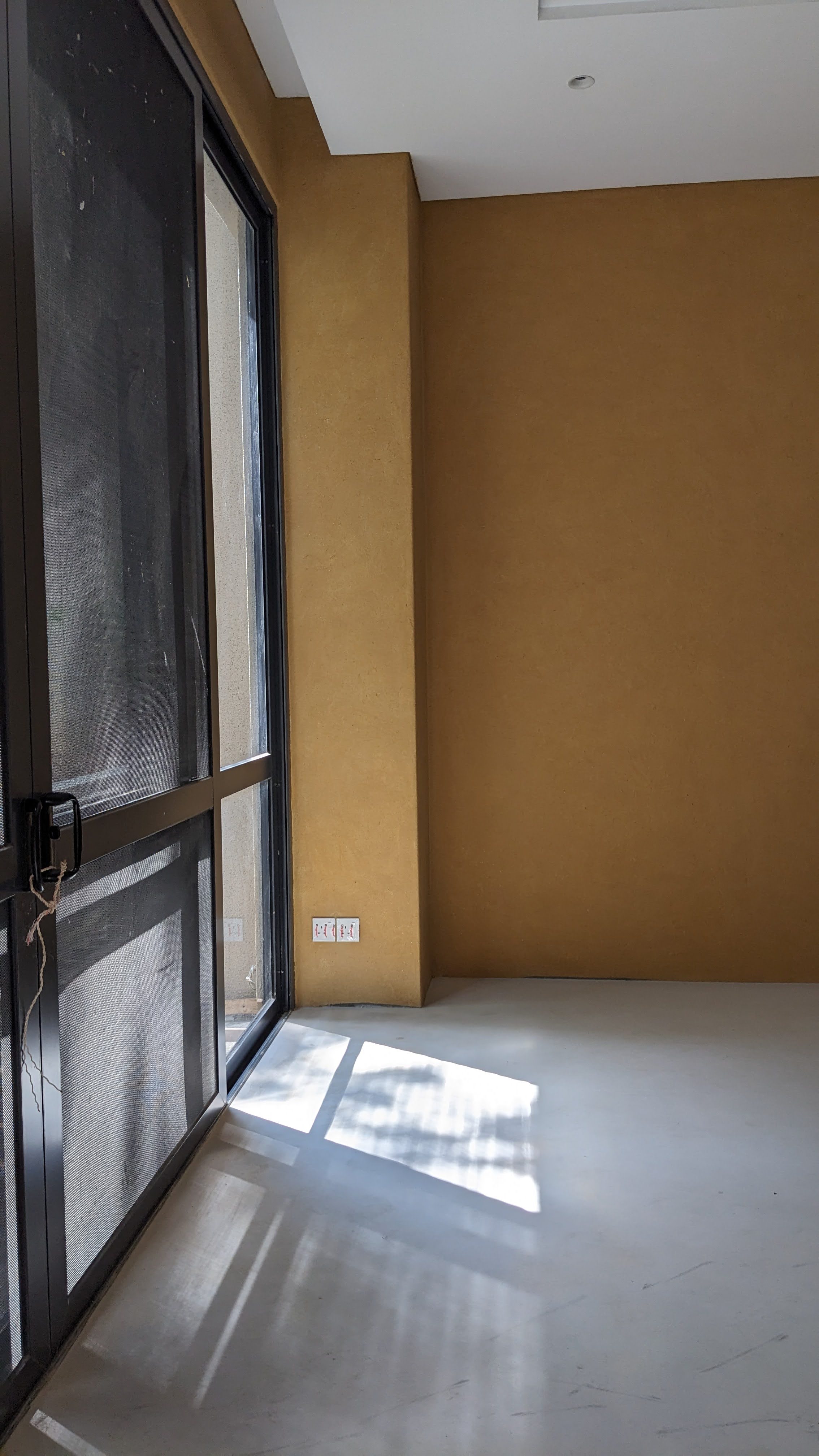 The red clay plaster install in the owner’s prayer room, crafted from the earth beneath the house and added in white crystal gravel and chopped straw, presents serenity and rustic beauty. The yellow earth wall serves as the tea room, also acting as the homeowner’s initial guest reception area, presenting a sense of calmness in individuals. The colour of theme wall is similar to the floor and exterior walls, maintaining a warm and harmonious atmosphere. All the colours are from earth, making each space feel tranquillity, but they are very different.