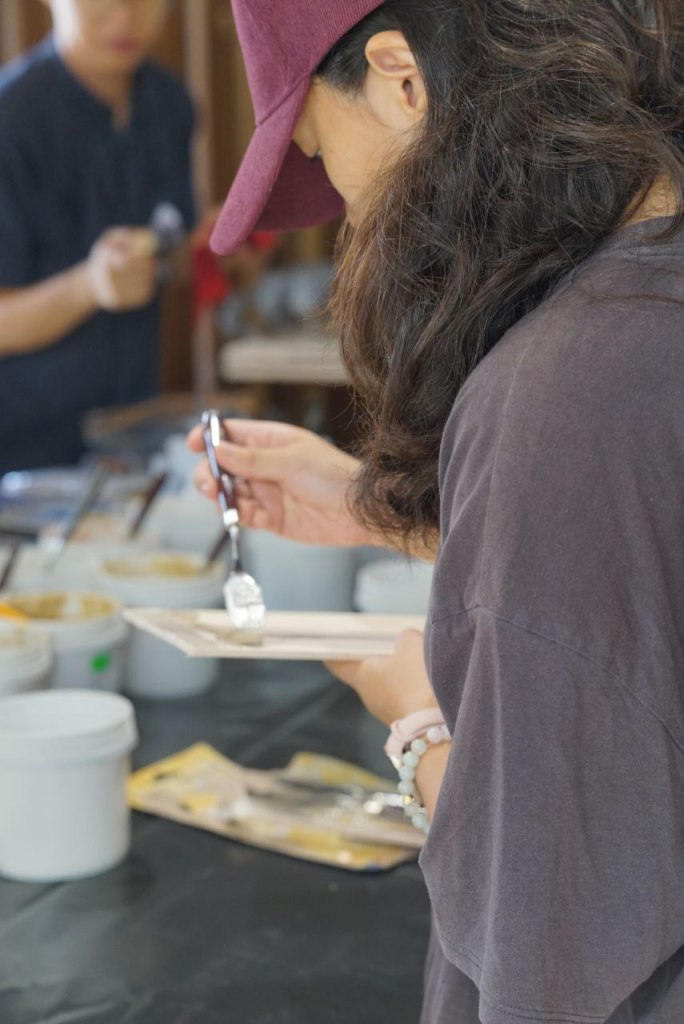 “It’s really fun to be able to use your creativity to make something you like! Although it looks simple, once you actually try it, it can be quite challenging, and the result may not turn out exactly as you imagined. But it always has its own unique beauty! It’s truly enjoyable and interesting, forgetting all worries, and in that moment, just focusing on installing clay plaster. Very fun and excited hands on experience!”