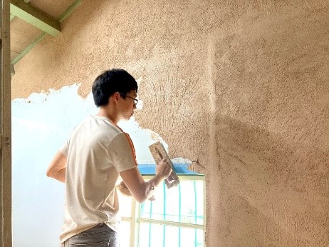 3. Apply 1-2 coats by flexible trowel in a thin coat. Allow each coat to dry (about 1 day) before the next coat is applied. Install Mineral Primer if necessary before applying clay plaster to get a slightly rough surface so that it can adhere well to the substrate. 使用鏝刀(軟推刀)塗抹1~2層塗料,在塗抹新的一層時,請確保上一層已乾燥(約1天)。若有需要,請事先使用礦物底漆進行打底以便能使泥土塗料更好的附著在基材上。