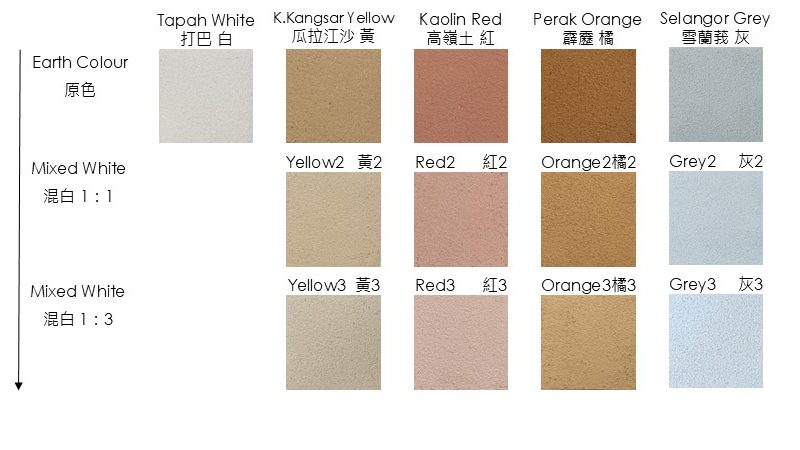 Actual colour and texture will be related to actual light. Colour deviations cannot be excluded, each batch of product and aggregate accumulations may cause colour to vary slightly (It’s recommended to order amount required in one purchase). 實際色彩質感與光線有關。無法排除顏色所呈現色差,每一批產品和刷塗堆疊次數都會導致顏色略有差別(建議一次採購所需的量)。