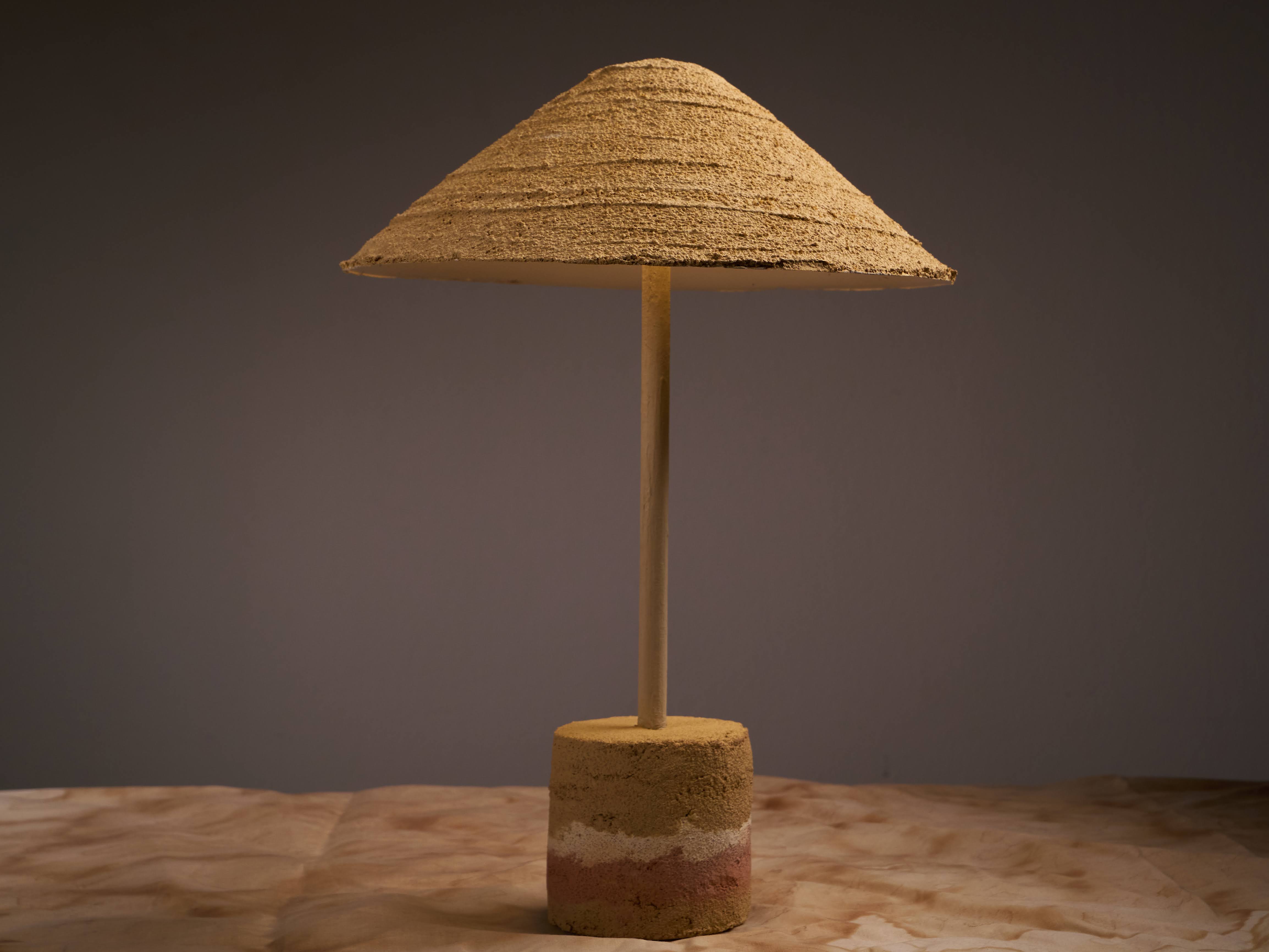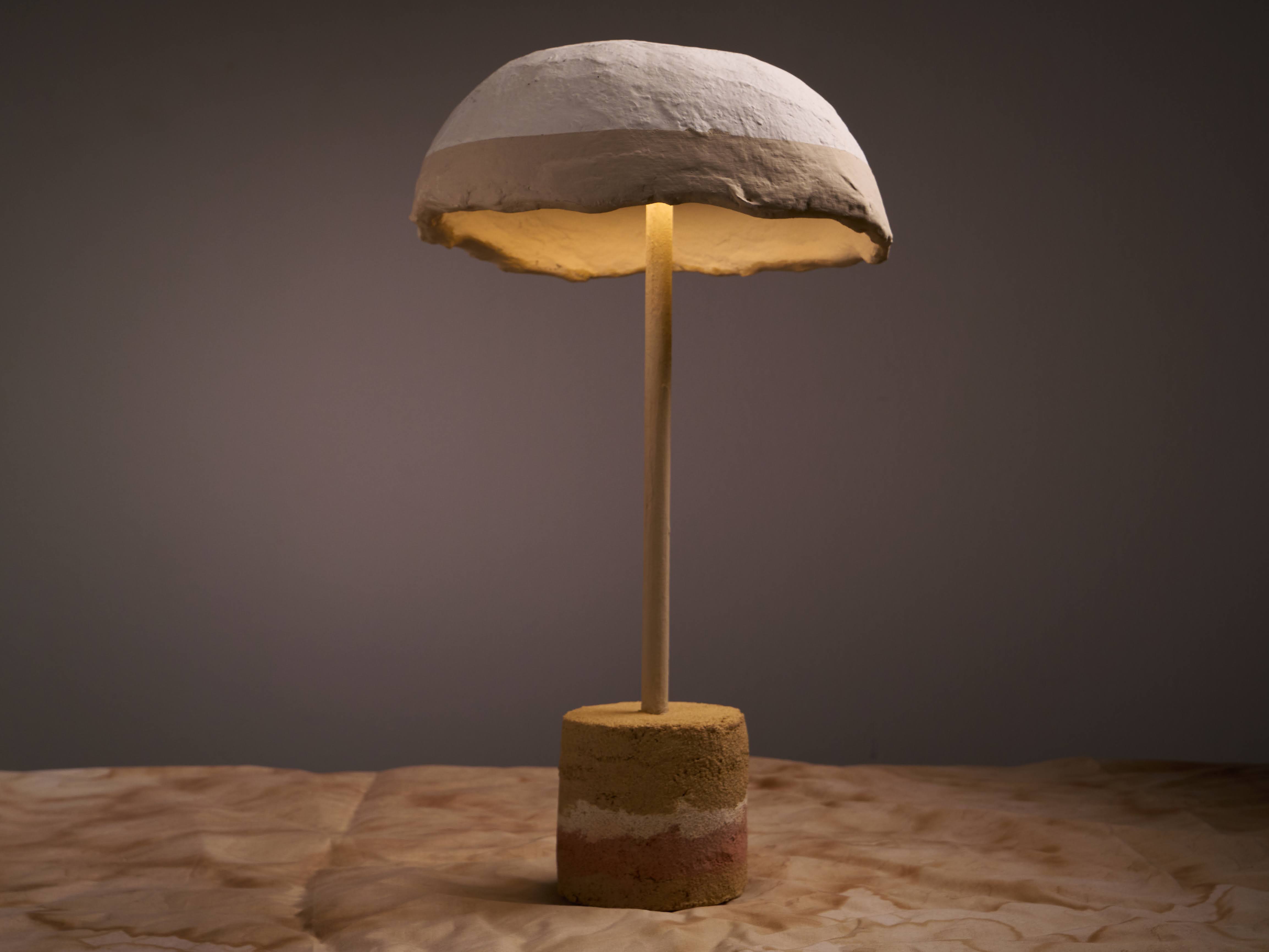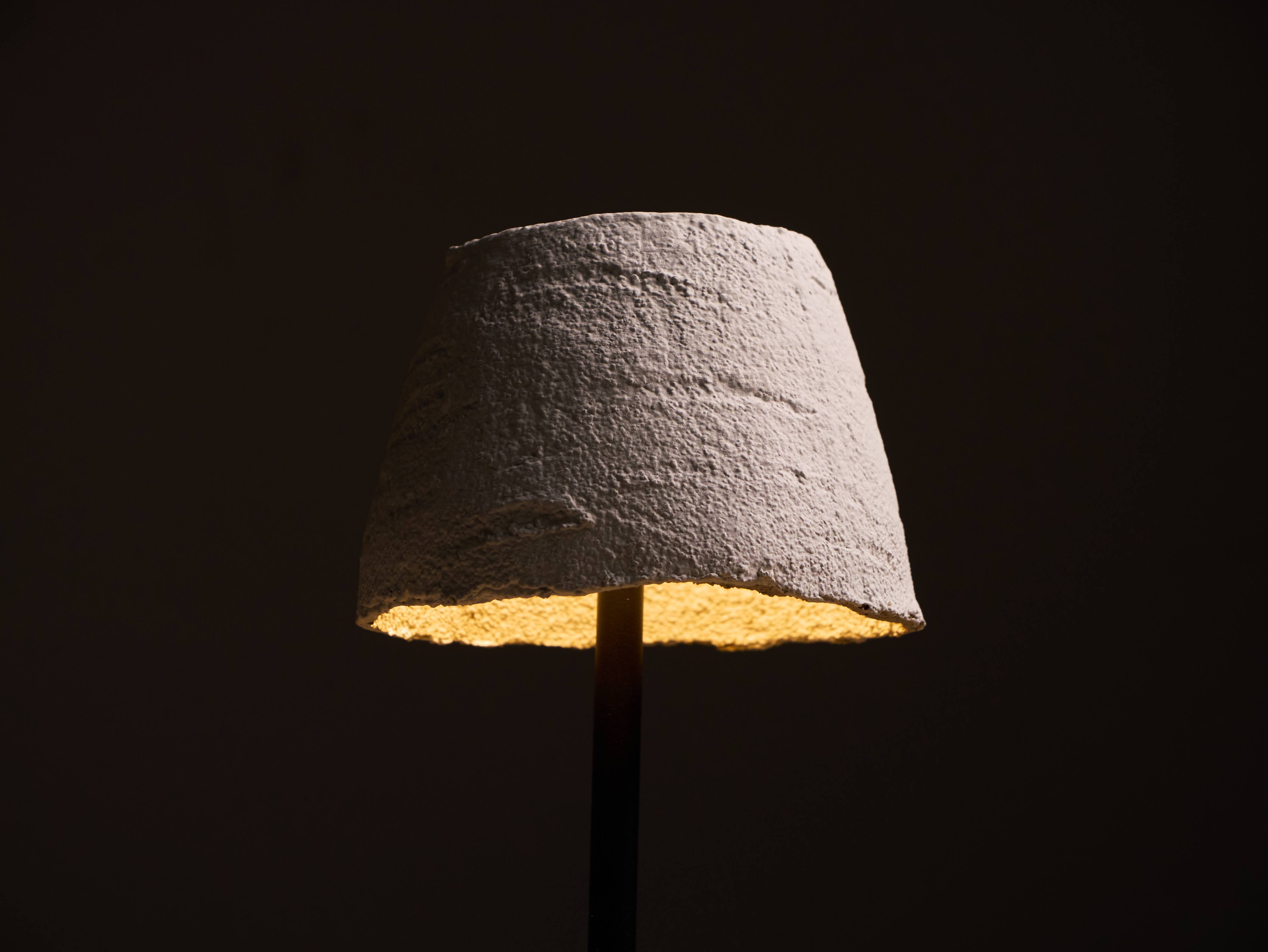 The earthen lampshade is fully biodegradable and coated with ADPHOCAT99, allowing it to generate negative ions when the light is switched on.