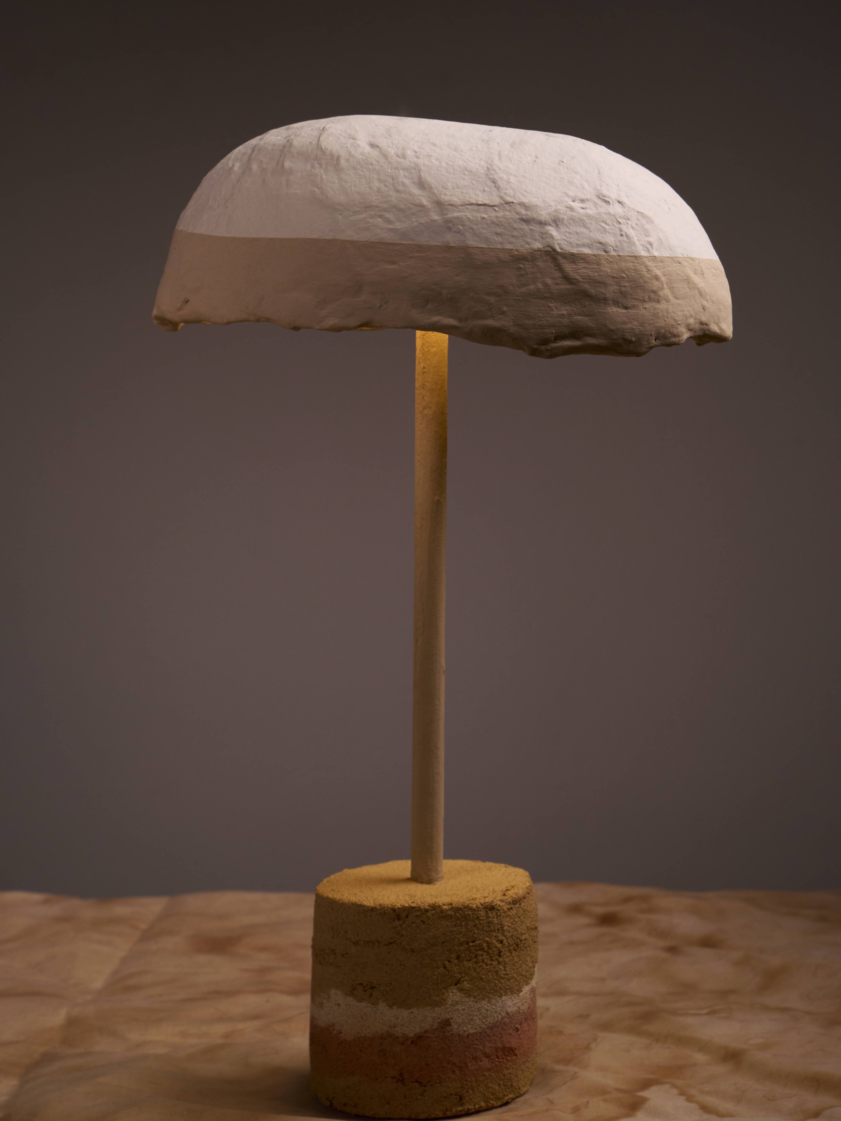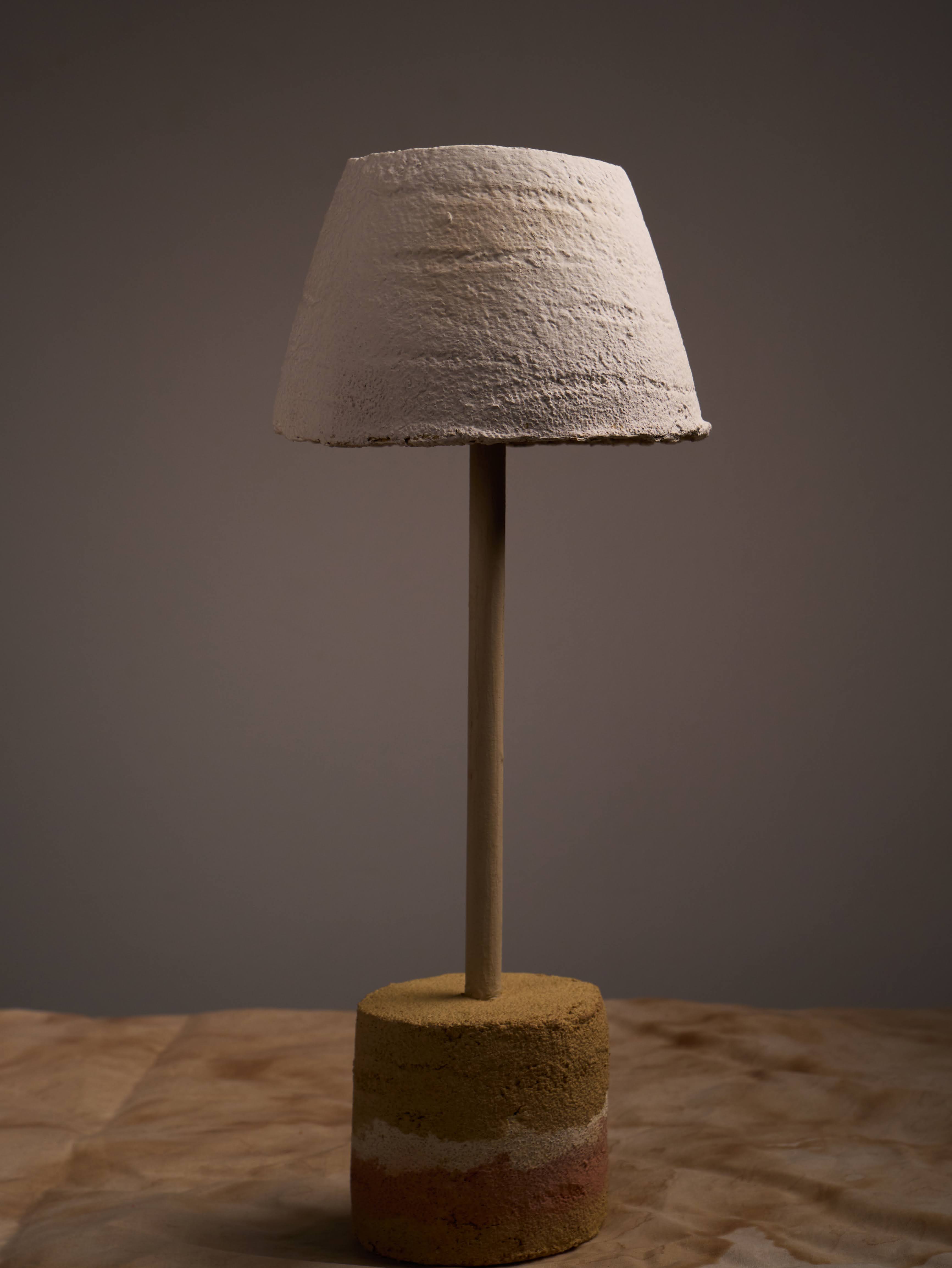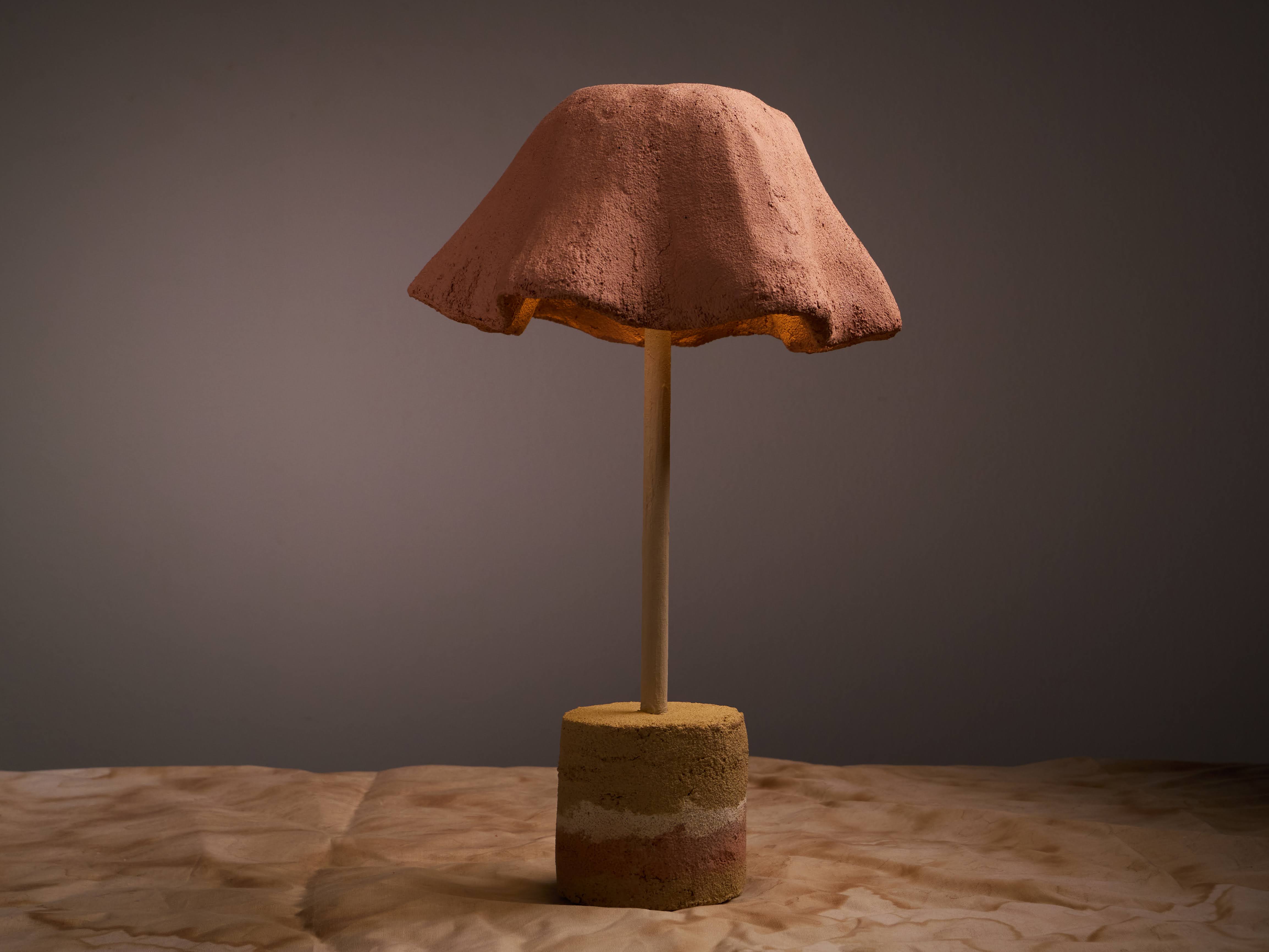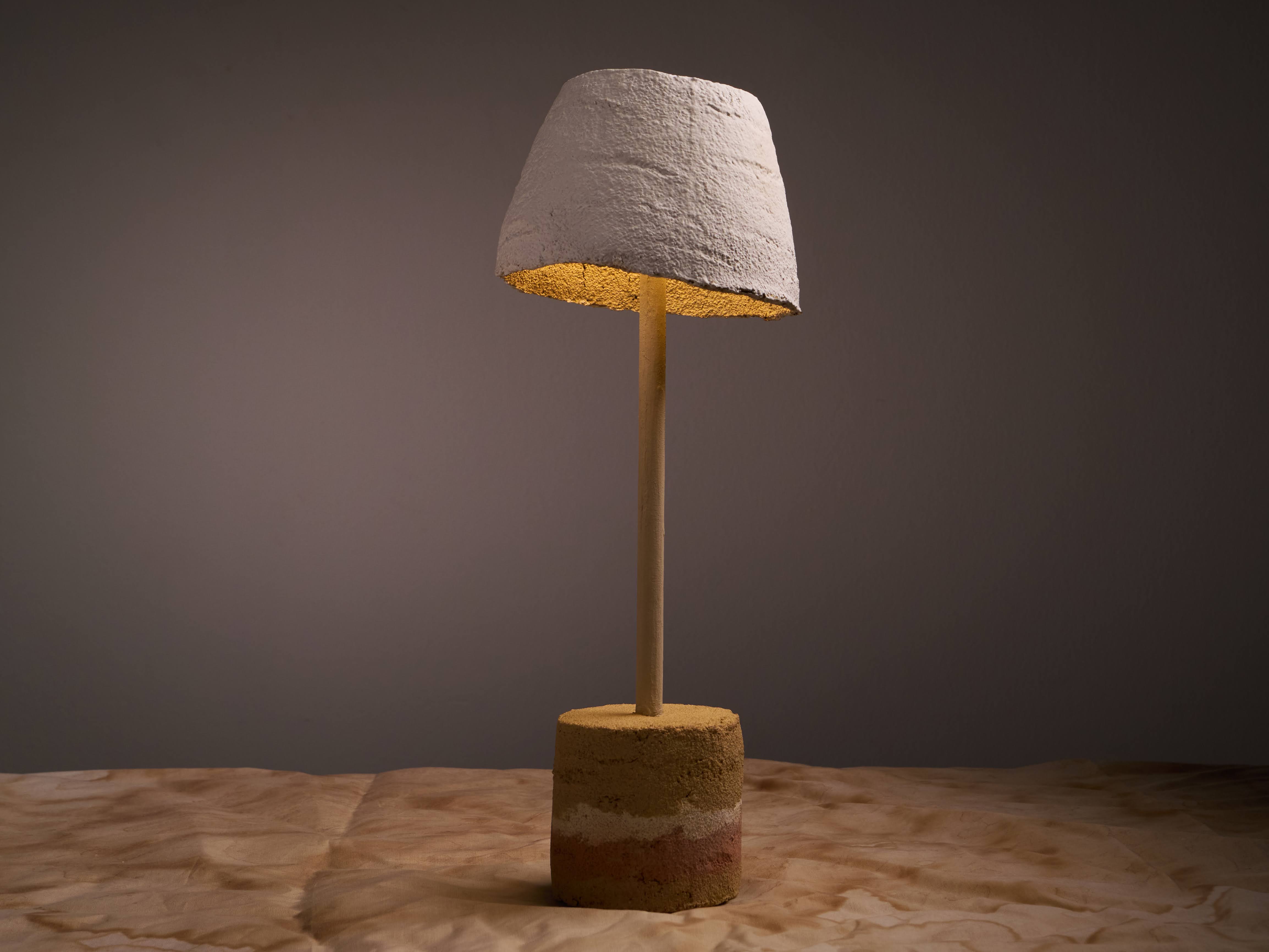 The earthen lampshade is fully biodegradable and coated with ADPHOCAT99, allowing it to generate negative ions when the light is switched on.