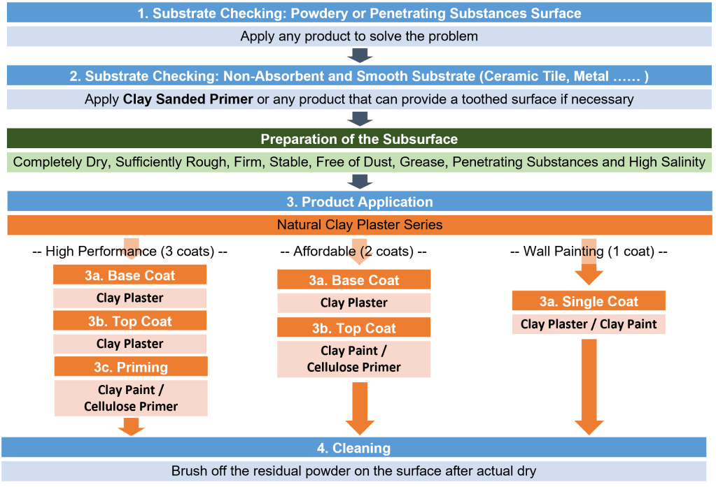 - 2 coats: For those on a tight budget seeking improved humidity control, we suggest applying a thin layer of clay plaster, then applying clay paint after actual drying to have a durable surface if necessary.